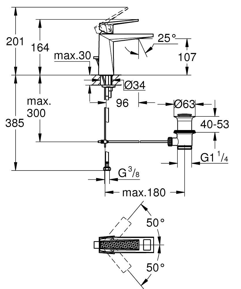 Grohe Allure Brilliant Private Collection M-Boy Lavabo Bataryası, Sifon Kumandalı, Fırçalı Sert Grafit 24397AL0
