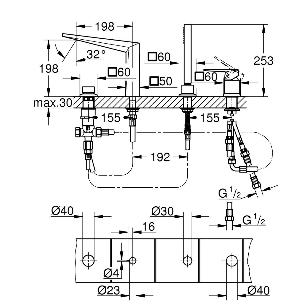 Grohe Essence 3 Delikli Küvet Bataryası 19976001