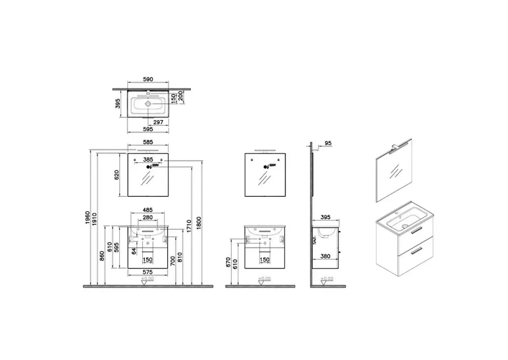 Vitra Banyo Dolabı Seti, Çekmeceli, 60 Cm, Parlak Beyaz 75021