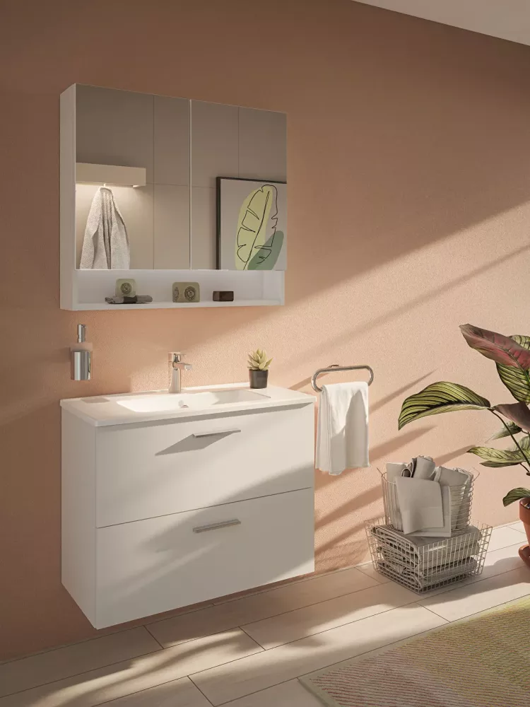 Vitra Banyo Dolabı Seti, Çekmeceli, Raflı Dolaplı Ayna 80 Cm, Parlak Beyaz 66050