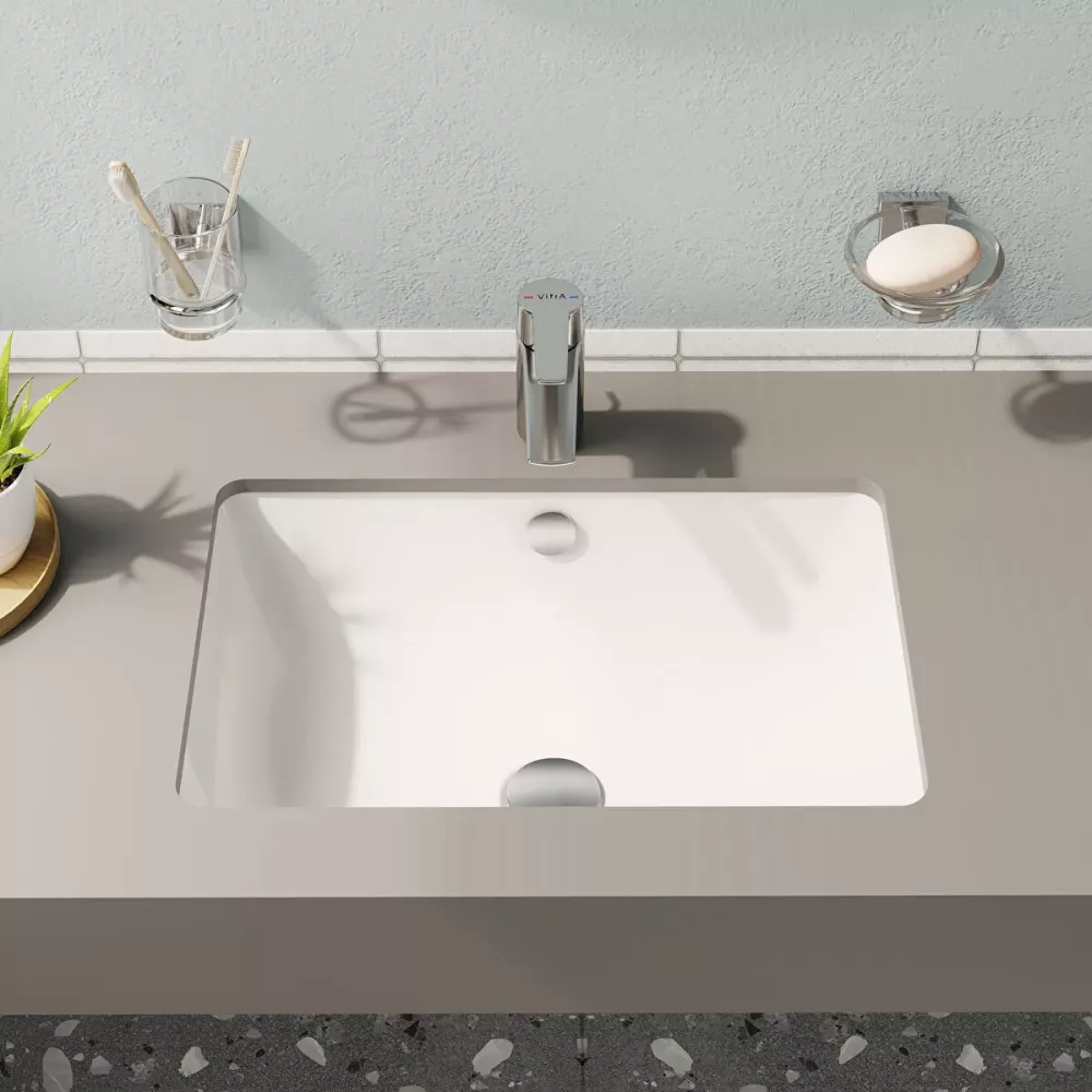 Vitra S20 Tezgahaltı Lavabo Dikdörtgen, 55X37 Cm Armatür Deliksiz, Su Taşma Delikli, Beyaz