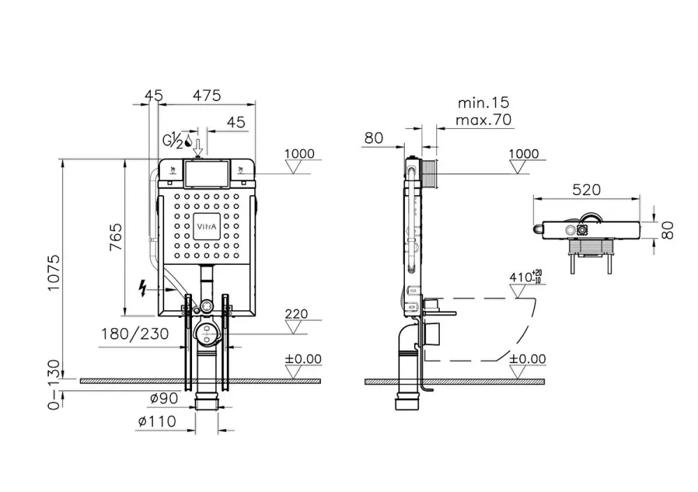 VitrA V8 Gömme Rezervuar (Asma Klozetler İçin Metal Ayaklı, 3/6lt) 768-1851-01